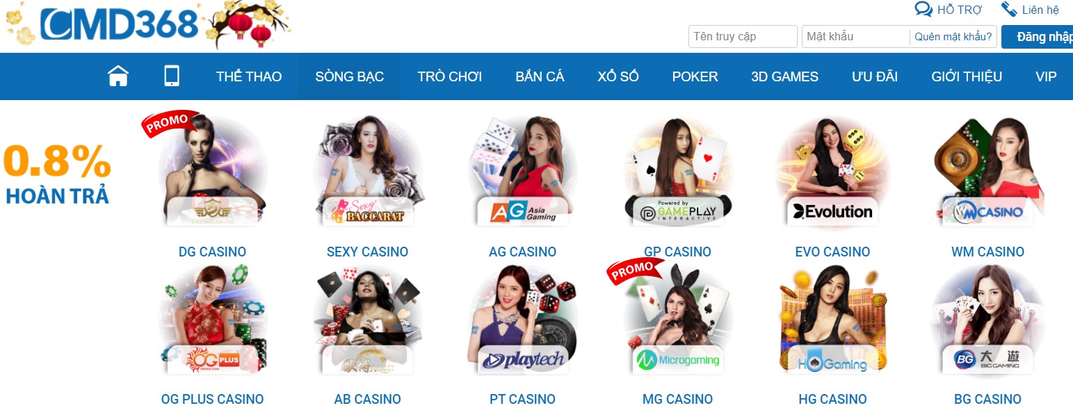 Nếu đã tham gia tại CMD368 thì ae không thể bỏ qua những sòng bài cực kì hấp dẫn của chúng tôi. Thay vì phải di chuyển tới các sòng bạc ở nước ngoài thì ae chỉ cần một chiếc điện thoại hay một cái máy tính có kết nối internet thì ae có thể tham gia sát phạt ngay.